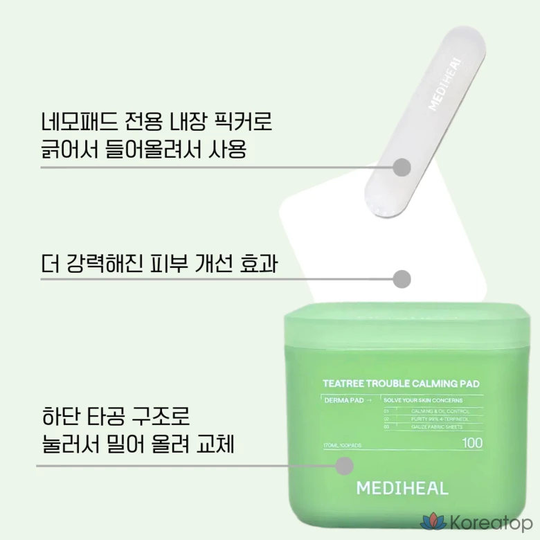 Успокаивающие подушечки Mediheal Derma Tea Tree Trouble Soothing Pads 2-го поколения, 100 листов, 1 упаковка.