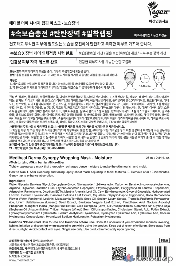 Увлажняющая защитная маска Mediheal Derma Synergy Wrapping Mask, 10 шт., 1 упаковка