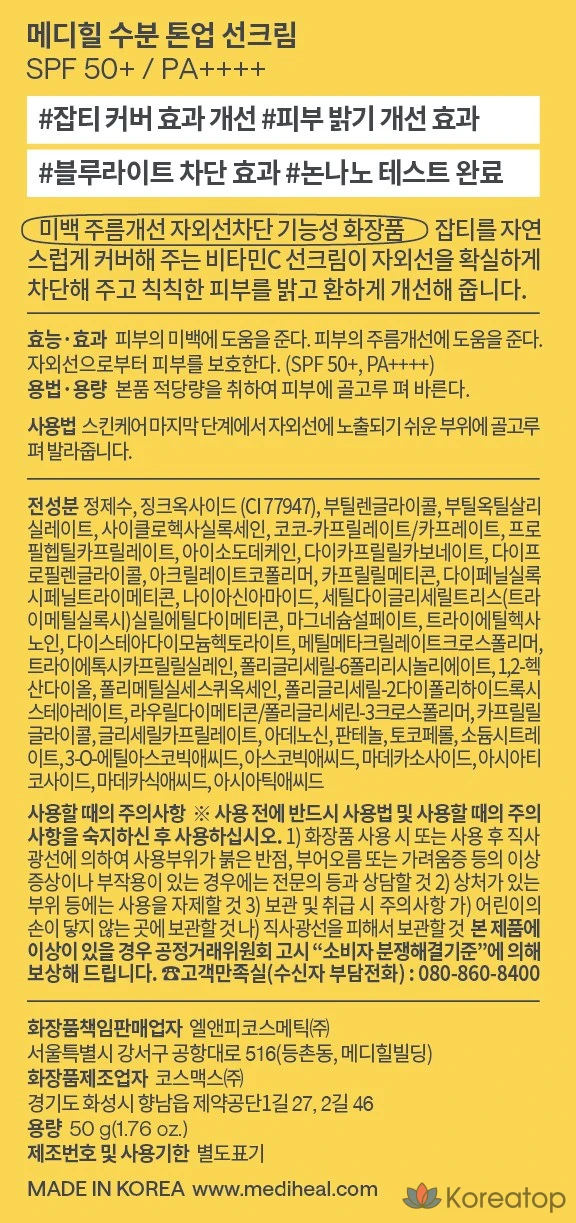 Увлажняющий солнцезащитный крем Mediheal Moisture Tone-Up Sun Cream SPF50+ PA++++, 50 мл, 1 шт.
