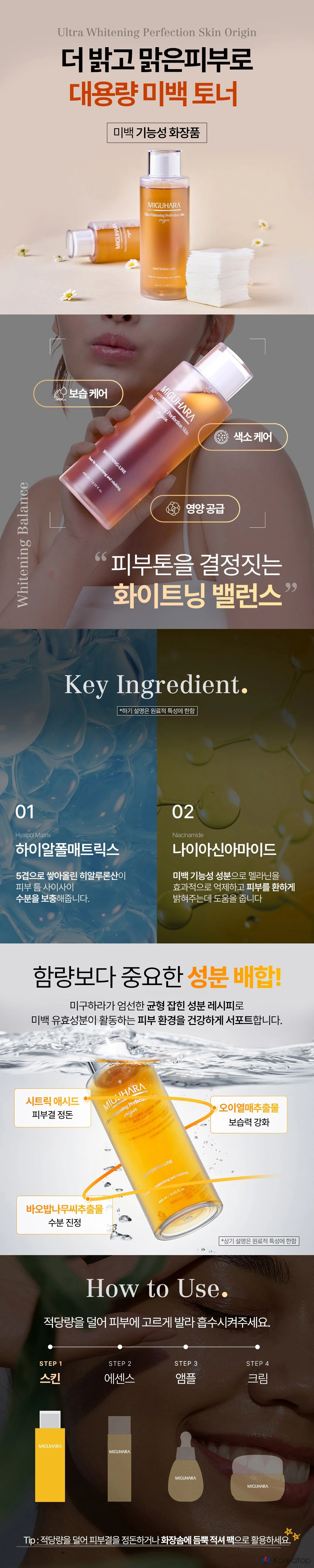 Miguhara Ultra Whitening Perfection Skin Origin, 1 шт., 400 мл