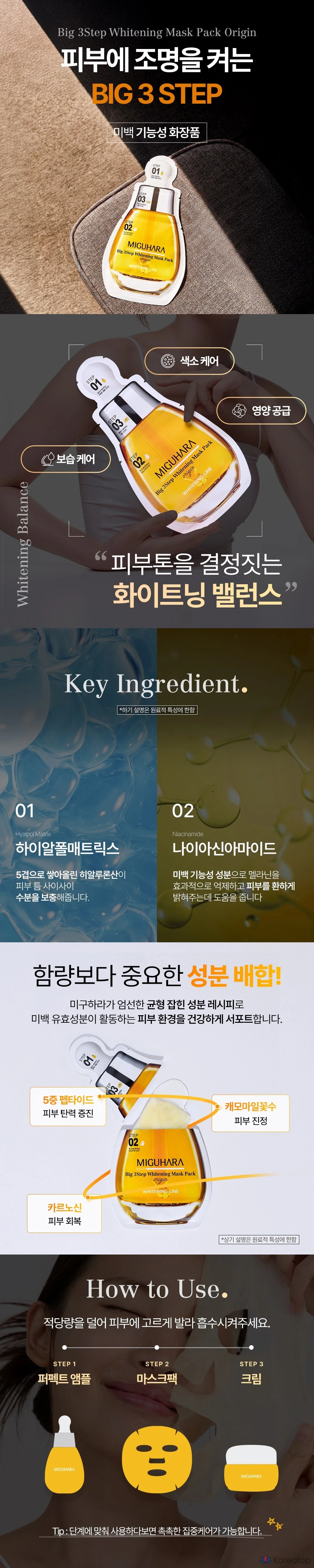 Набор отбеливающих масок Miguhara Big 3 Step, 1 упаковка, 1 шт.