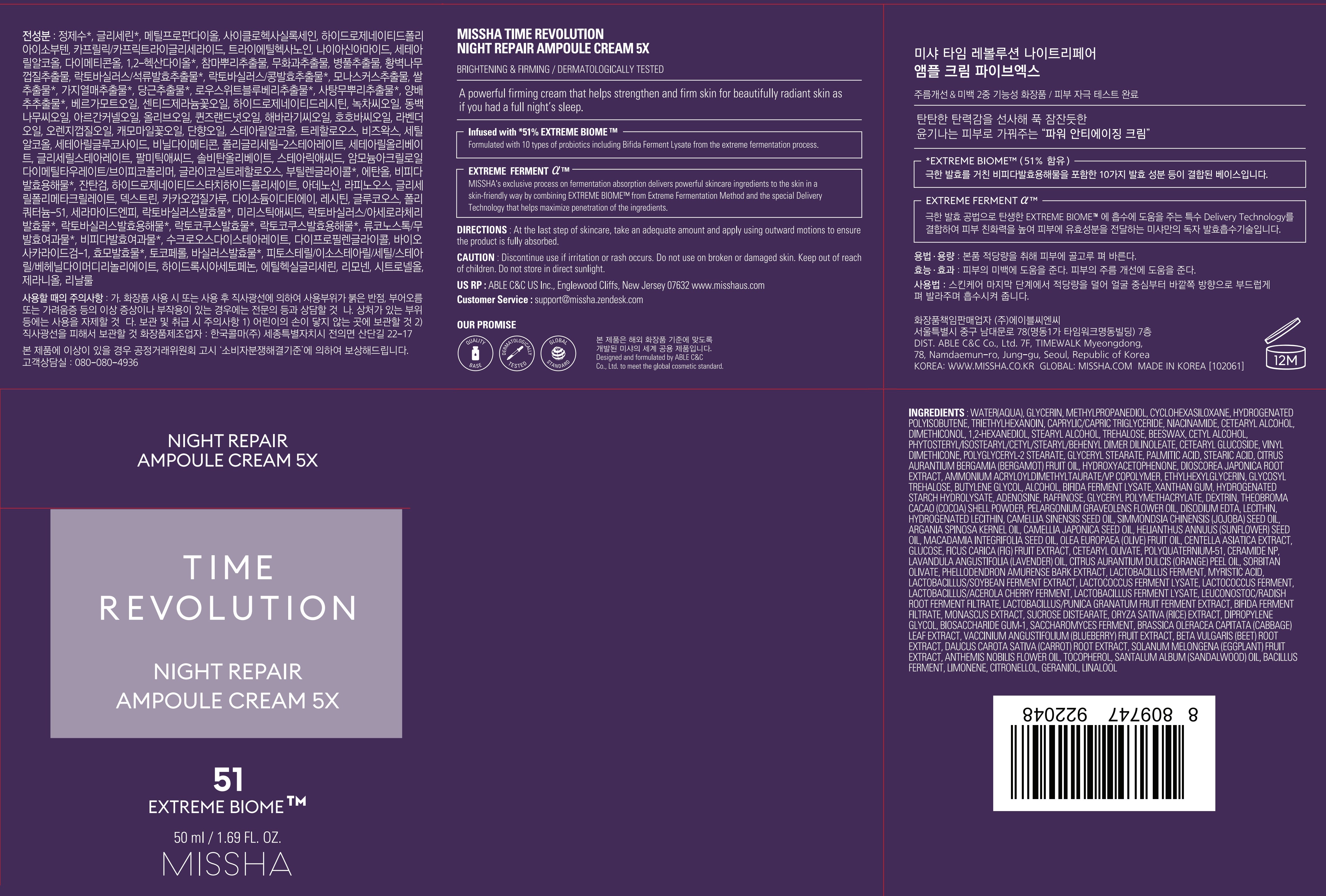 Крем-ампула Missha Time Revolution Night Repair, 5 шт., 50 мл, 1 шт.