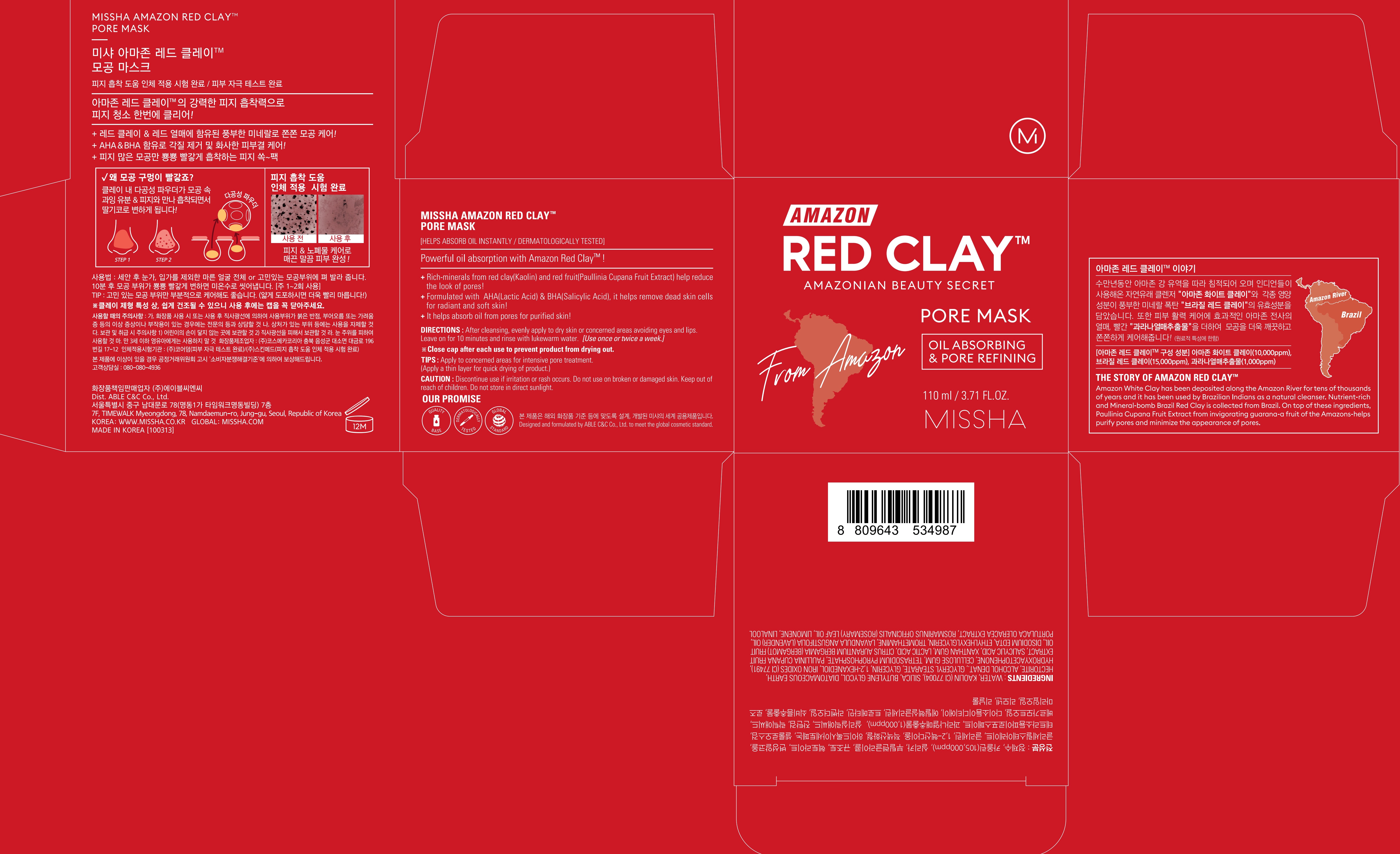 Маска для сужения пор Missha Amazon Red Clay, 110 мл, 1 упаковка, 1 шт.