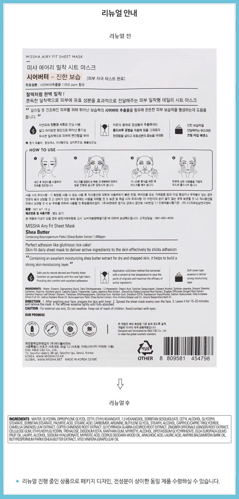Маска-салфетка Missha Airy с маслом ши, 1 упаковка, 1 шт.