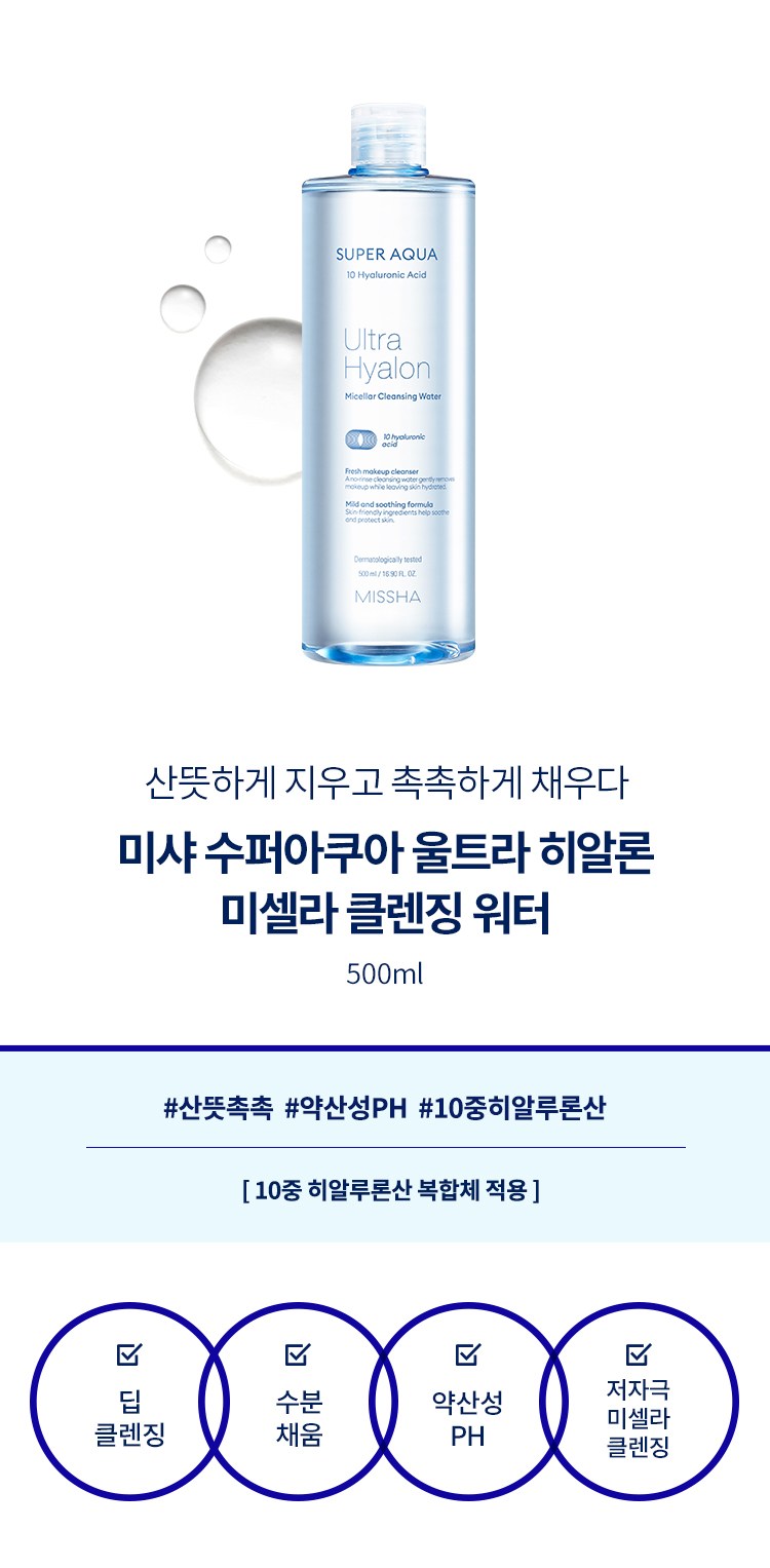 Мицеллярная очищающая вода Missha Super Aqua Ultra Hyalon, 500 мл, 1 шт.