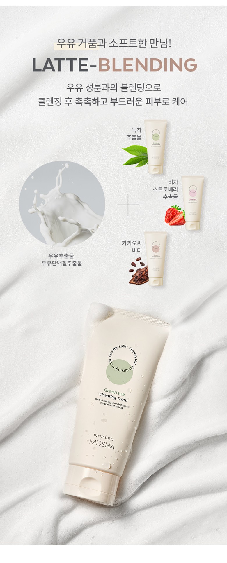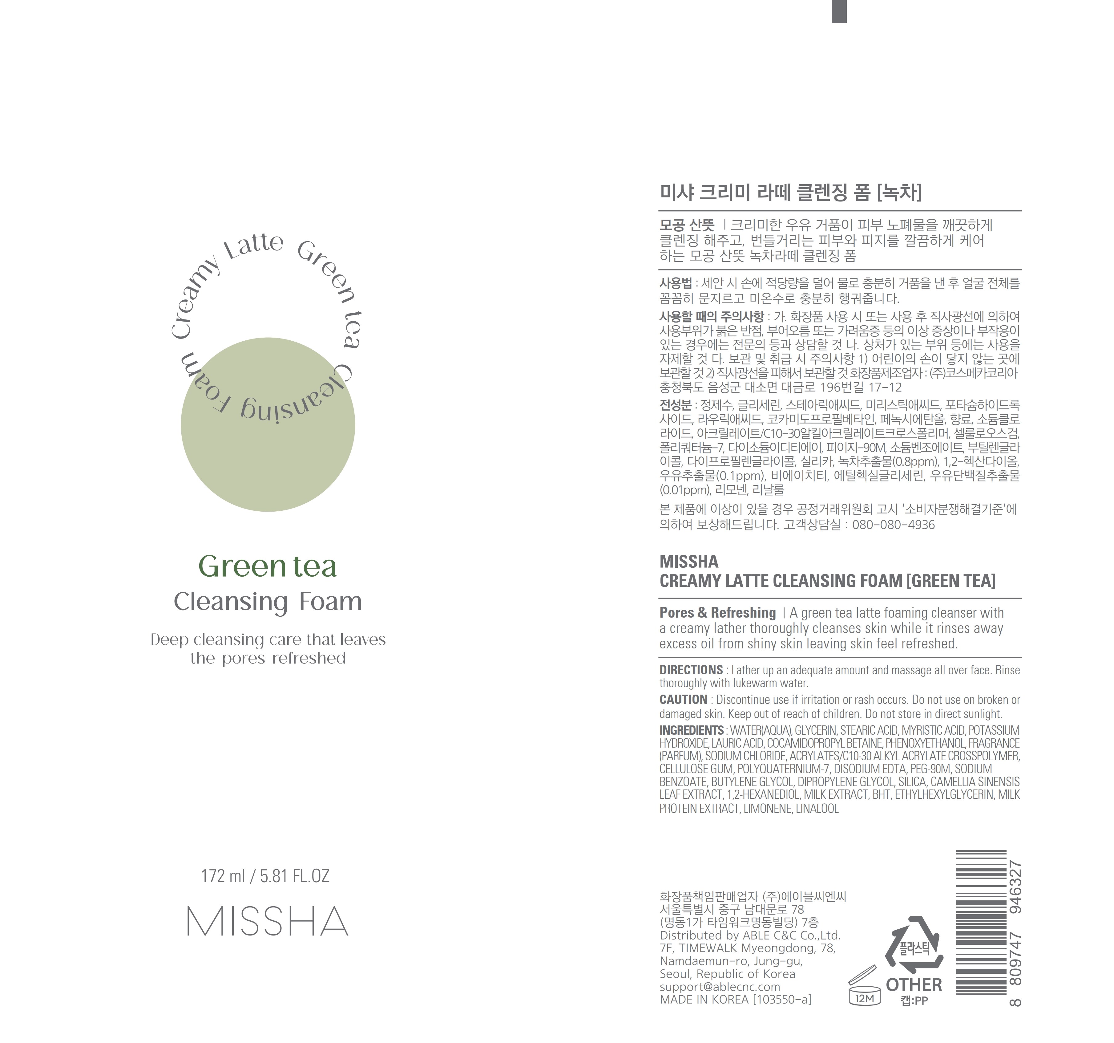 Очищающая пенка для лица Missha Creamy Latte с зеленым чаем, 172 мл, 1 шт.