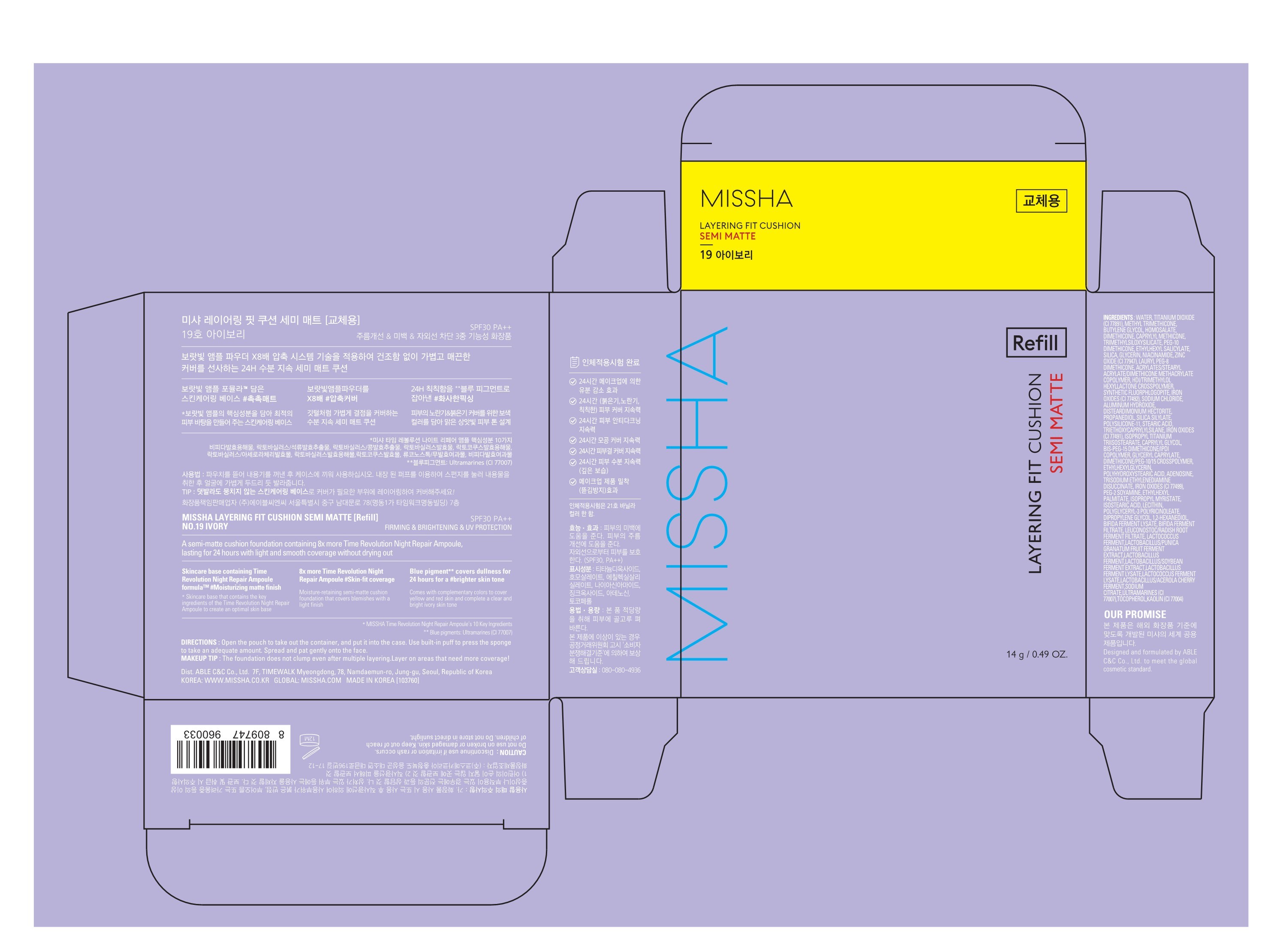 Сменный полуматовый тональный крем Missha Layering Fit Cushion Foundation, 14 г, № 21, 1 пара.