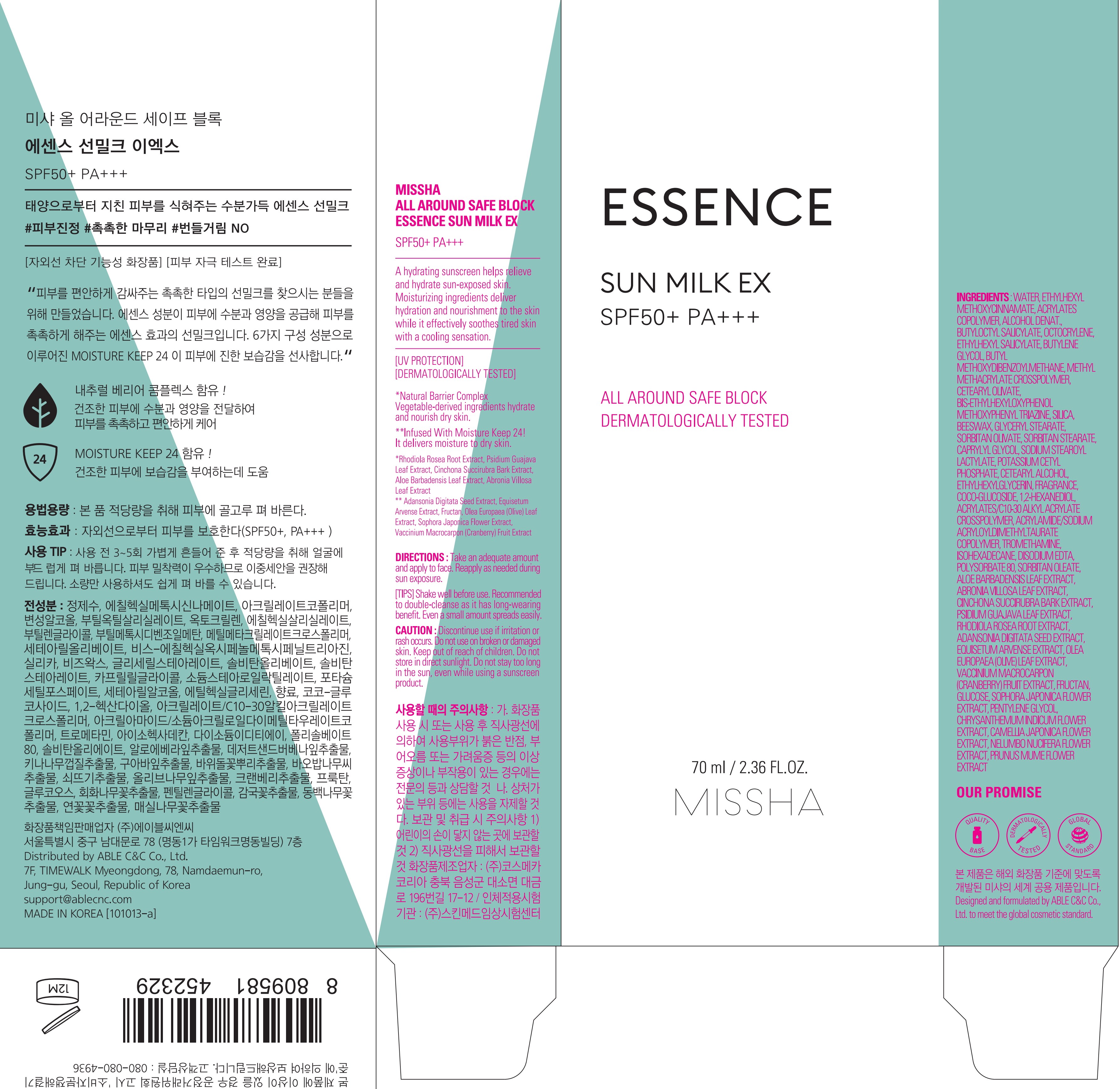 Солнцезащитное молочко Missha All Around Safe Block Essence Sun Milk EX SPF50+ PA+++, 70 мл, 1 шт.