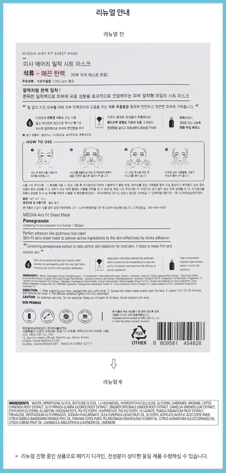 Тканевая маска Missha Airy Close-Fit с гранатом, 1 упаковка, 1 шт.