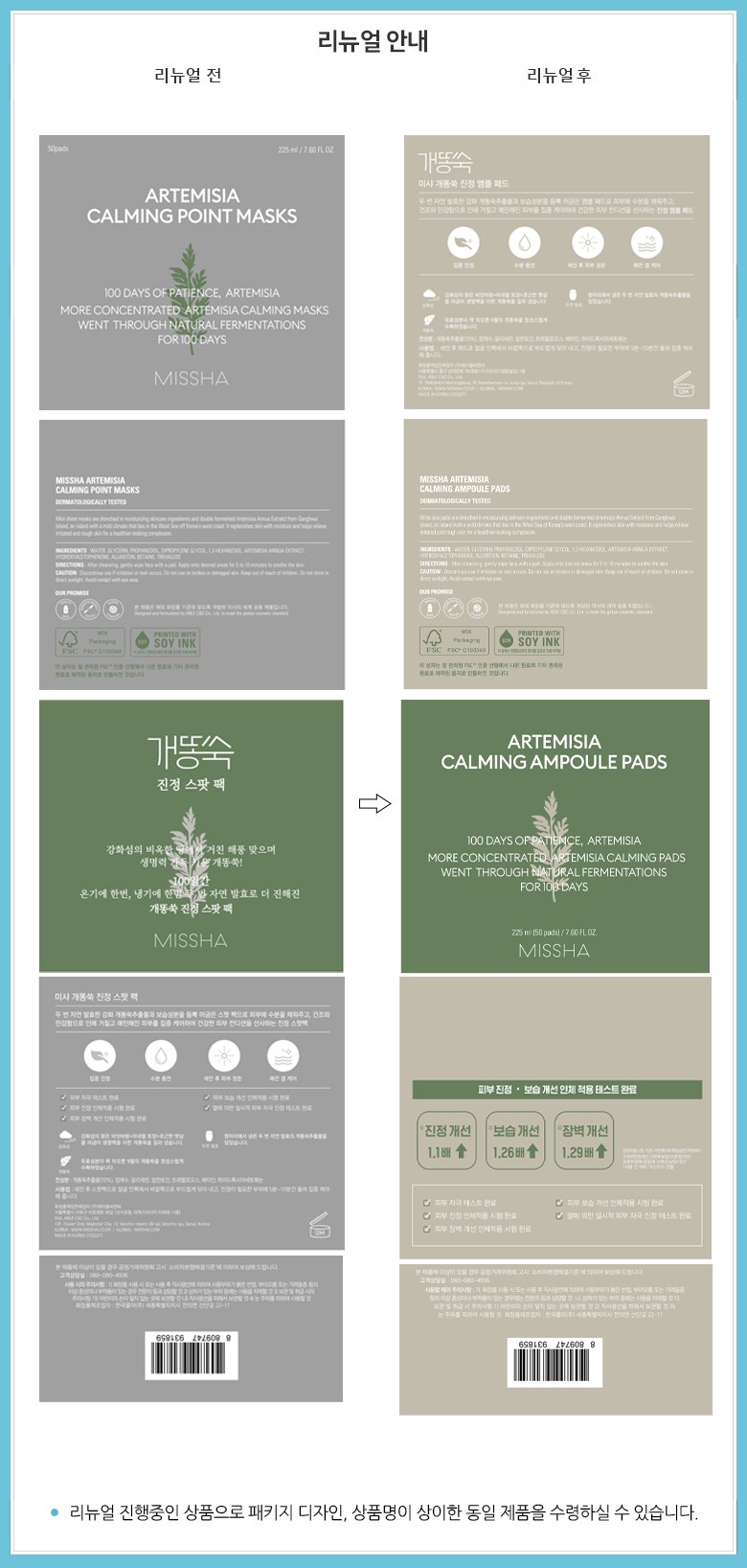 Успокаивающие ампуловые подушечки Missha Artemisia, 225 мл, 1 шт., 50 штук