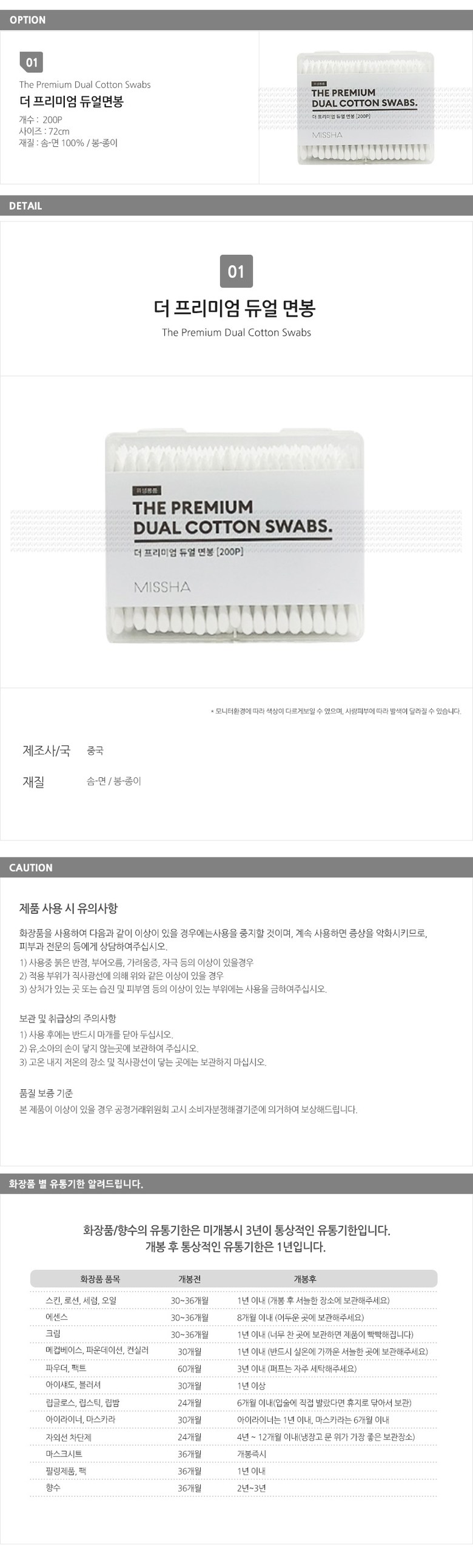 Ватные палочки Missha The Premium Dual Cotton Swab, 1 шт., 200 штук.