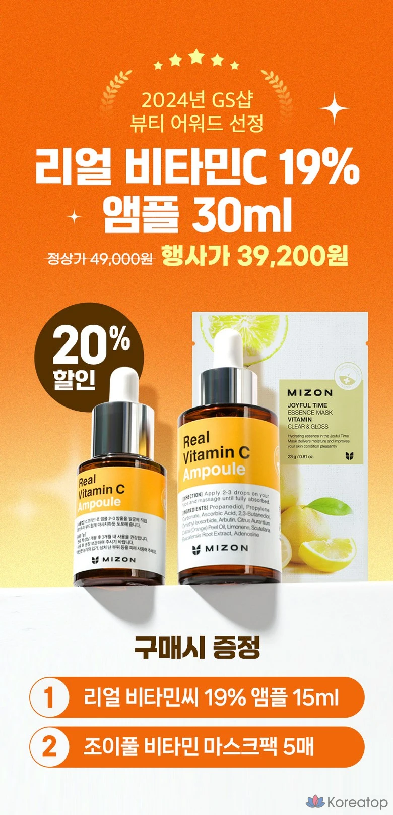 Ампула Mizon Pure Real Vitamin C 19%, 15 мл + набор масок Joyful Mask Pack, 5 листов, 1 шт.