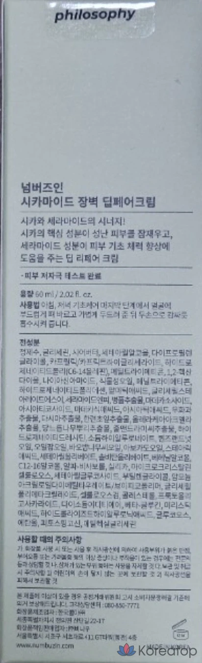 Крем для глубокого ухода за кожей Numbers In No. 2 Cicamide Barrier Deep Pair Cream, 60 мл, 1 шт.