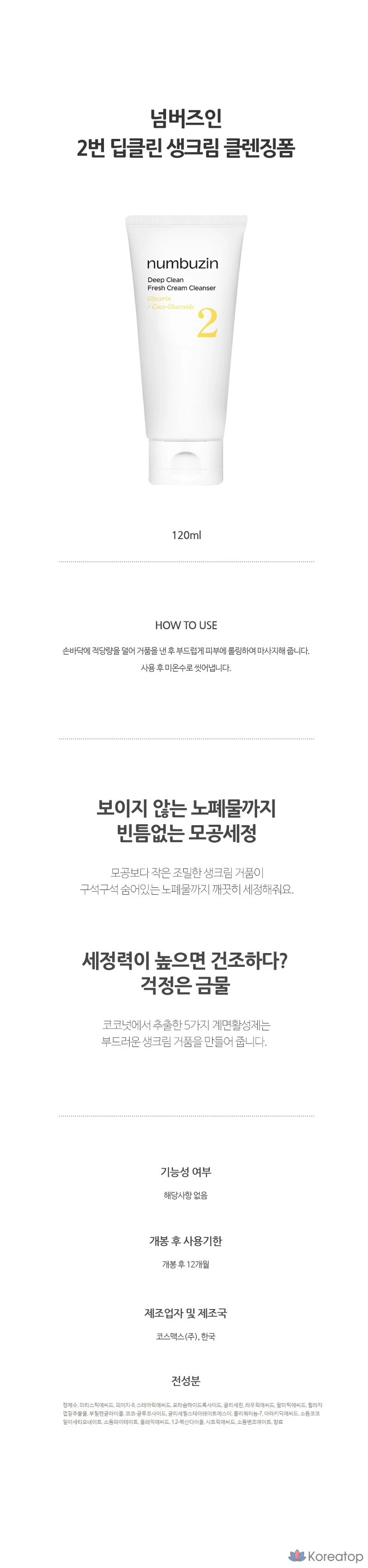 Очищающая пенка для лица Numbersin No. 2 Deep Clean Cream, 120 мл, 1 шт.