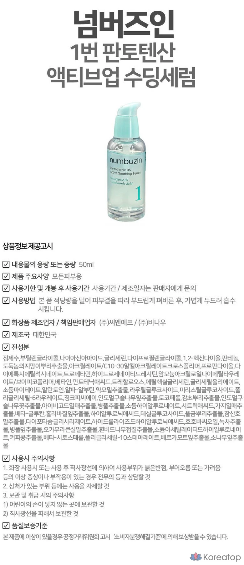 Сыворотка для лица Numbers In No. 1 Pantothenic Acid Active Up Soothing Serum, 1 шт., 50 мл