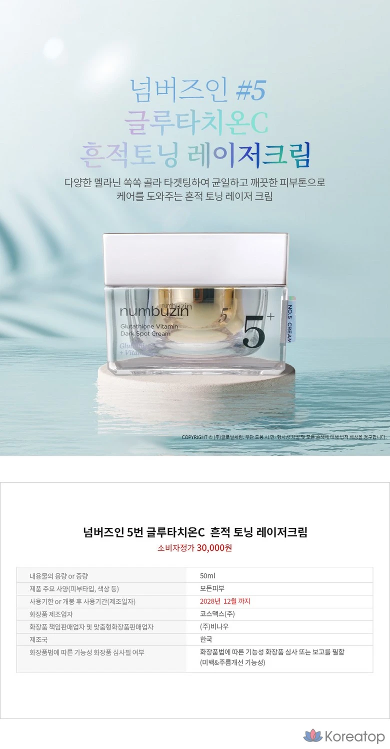 Тонизирующий крем Numbers In No. 5 Glutathione C Trace Toning Laser Cream, 50 мл, 1 шт.