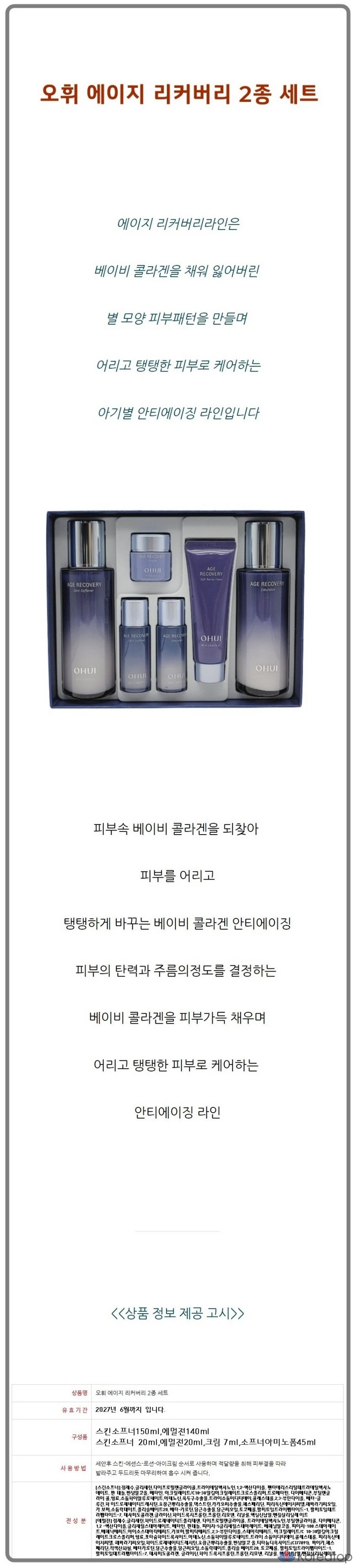 Набор базовой косметики Ohui Age Recovery, 2 предмета, 1 комплект.