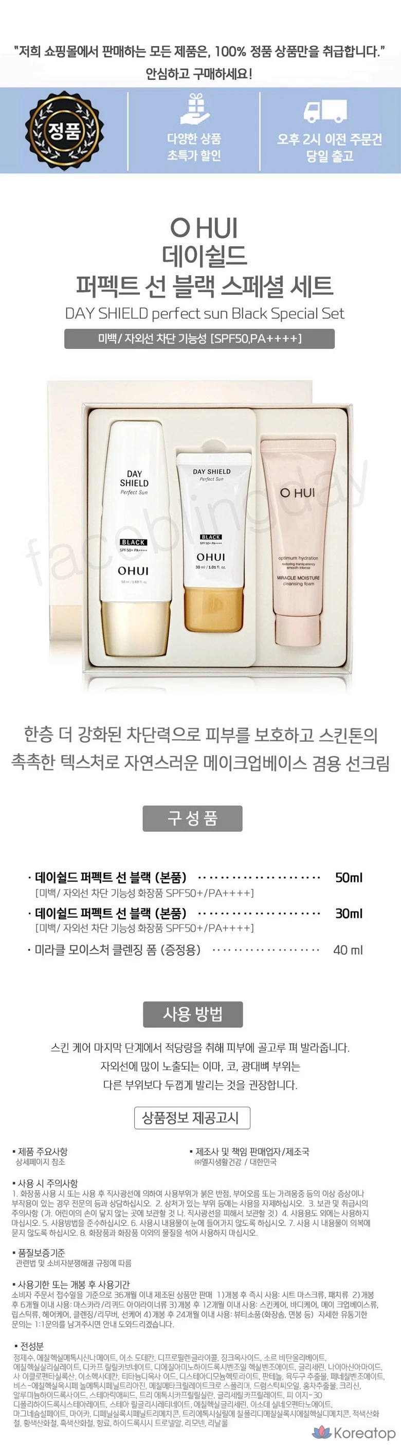 Набор из 2 косметических средств Ohui Sunscreen Day Shield Perfect Sun Black, 1 шт.