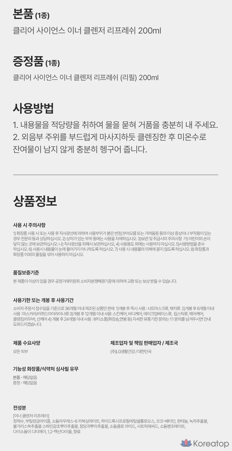 Набор из 2 средств для внутреннего очищения Ohui Clear Science Inner Cleanser Refresh, 400 мл, 1 комплект.