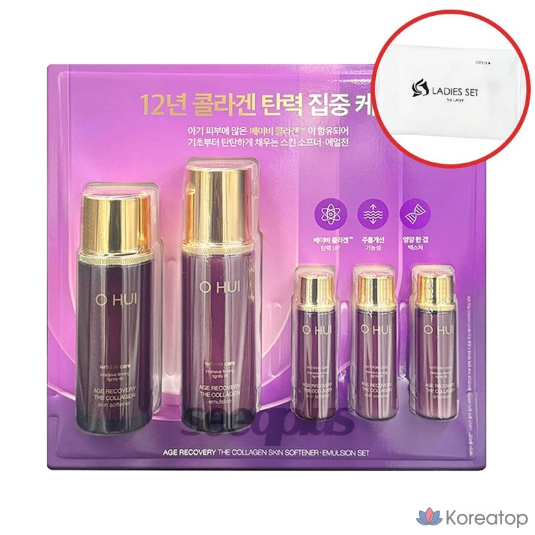Набор косметики Ohui Age Recovery Basic Cosmetics Lady Set (2 смягчающих средства для кожи + 20 мл + коллагеновая эмульсия 100 мл + 20 мл), 1 комплект.