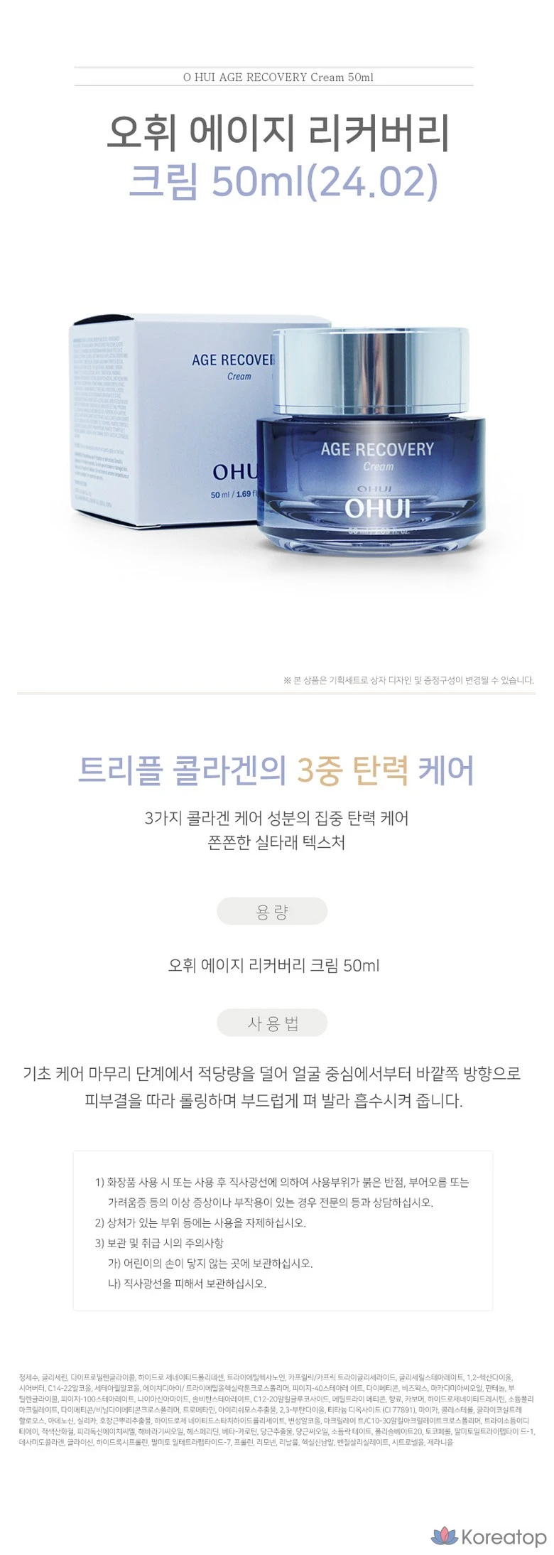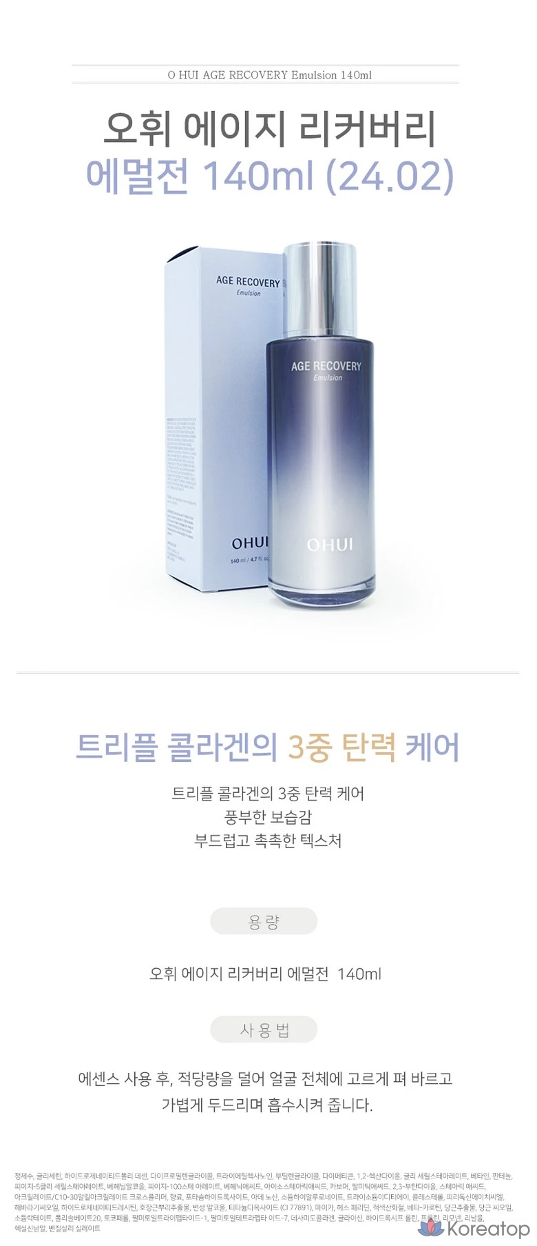 Набор Ohui Age Recovery из 3 предметов (смягчающее средство для кожи + эмульсия + крем), 1 шт.