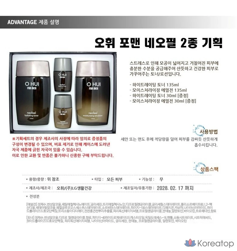 Набор Ohui For Men Neophil из 2 предметов, базовый набор мужской косметики, 1 комплект.