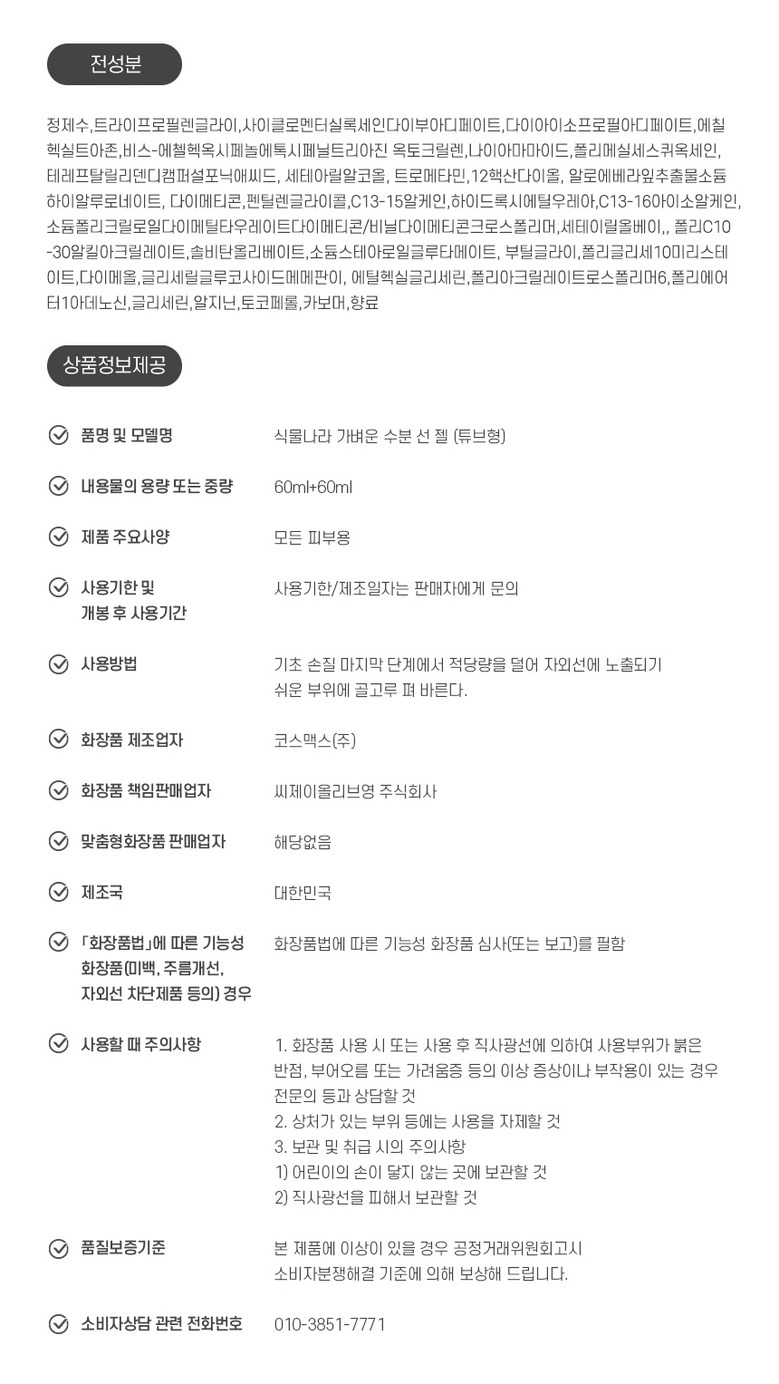 Солнцезащитный гель-лосьон Plant Nara Oxygen Water Light Moisture Sun Gel Lotion SPF50+ PA++++ 60 мл + 60 мл