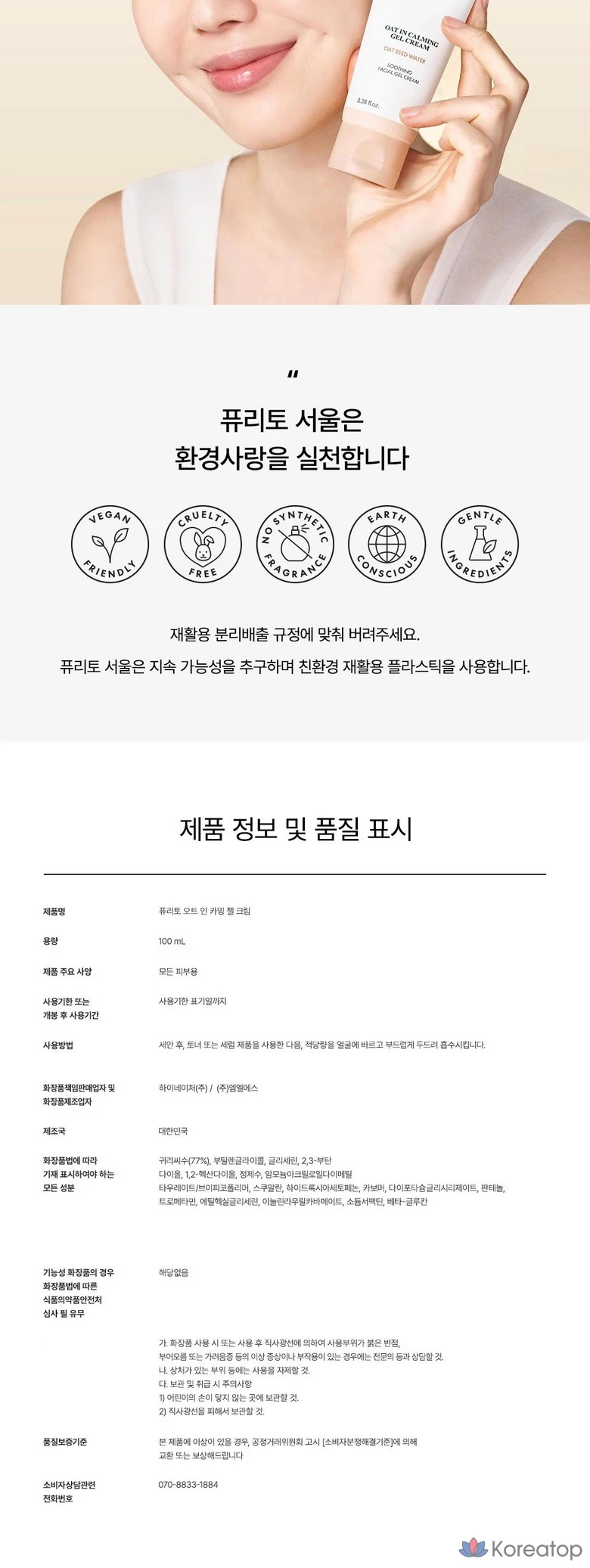 Успокаивающий гель-крем Purito Oat-in, 1 шт., 100 мл