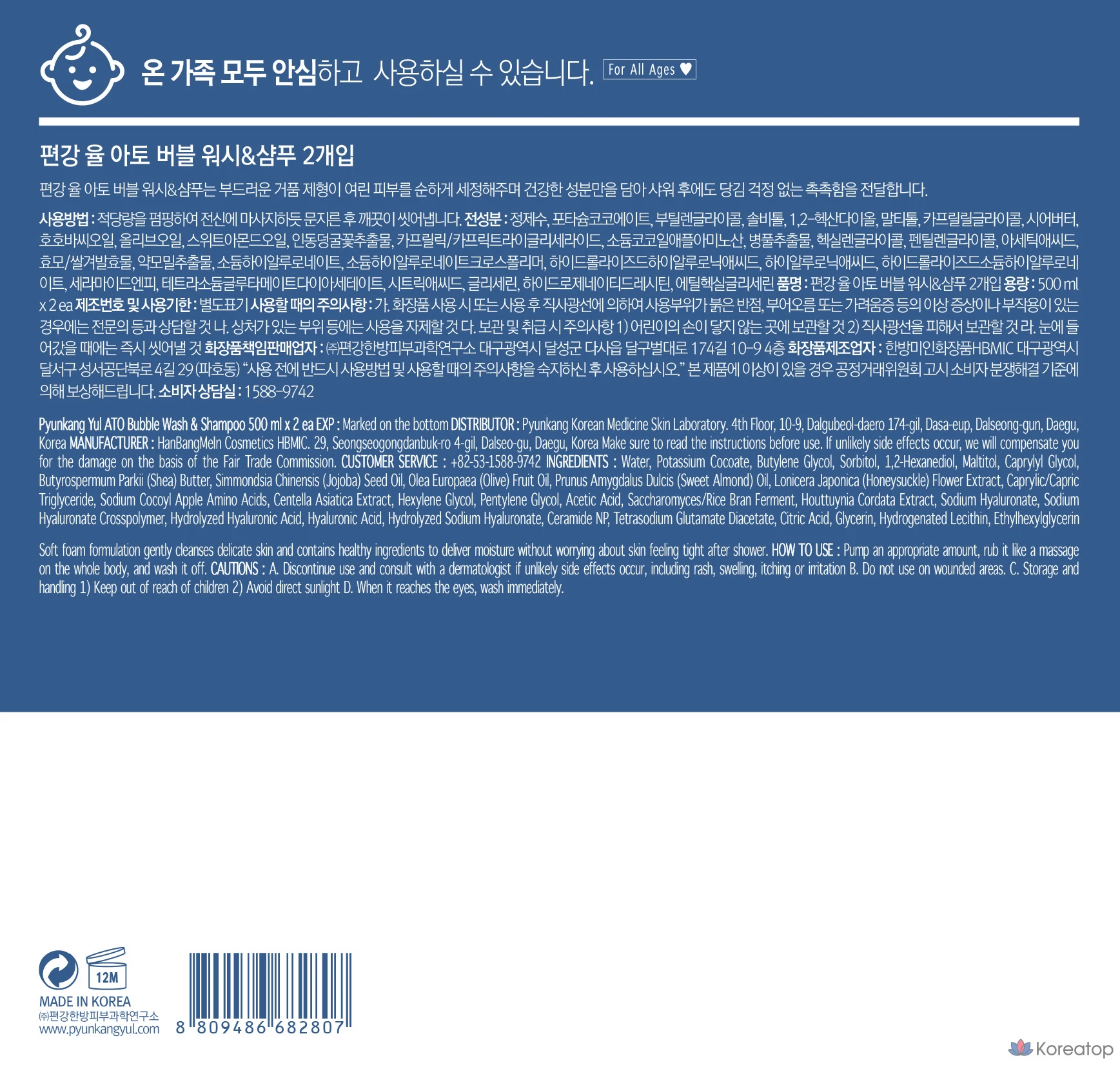 Пенящийся шампунь и гель для умывания Pyungangyul Ato, 500 мл, 1 шт.