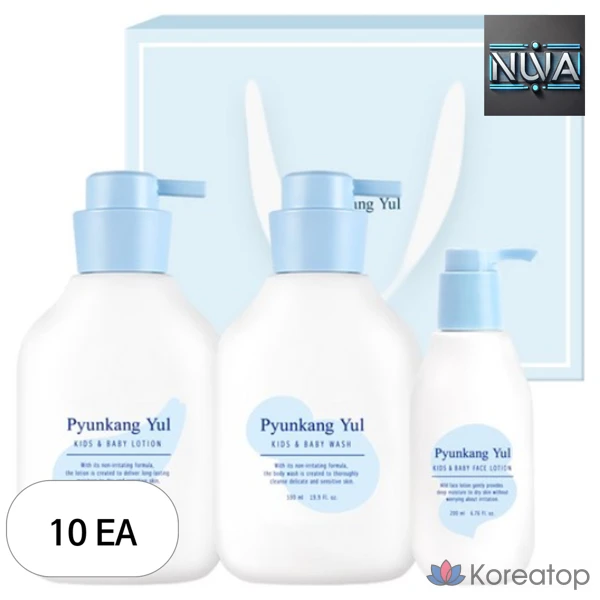 Pyungang Yul для детей и малышей: лосьон для тела 590 мл + гель для умывания 590 мл + лосьон для лица 200 мл, 1 комплект.