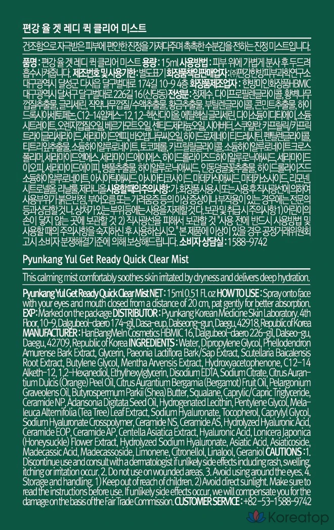 Спрей для лица Pyungang Yul Get Ready Quick Clear Mist, 1 шт., 15 мл