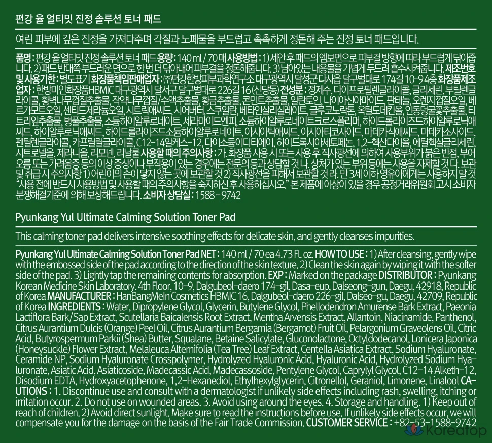 Тонизирующие подушечки Pyungangyul Ultimate Soothing Solution, 140 мл, 1 шт., 70 подушечек.