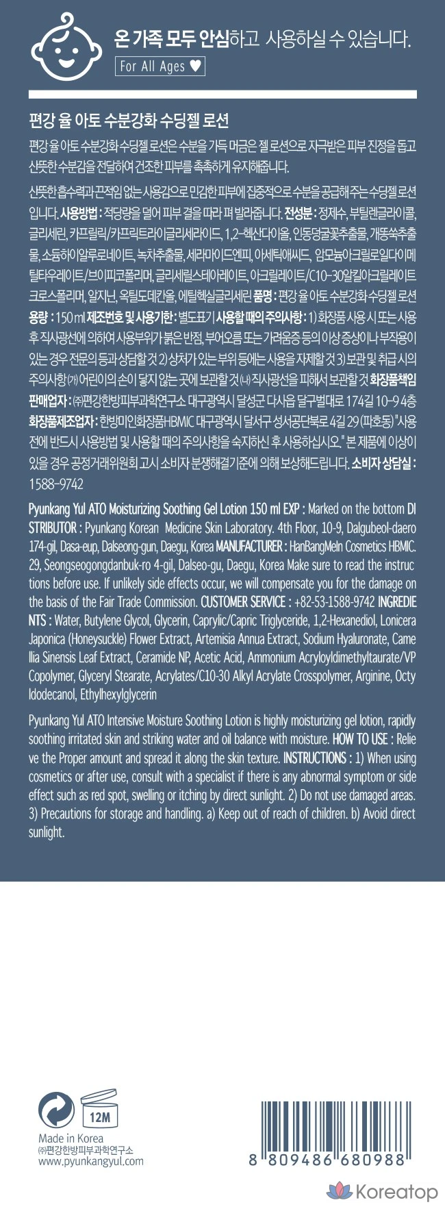 Увлажняющий успокаивающий гель-лосьон Pyungangyul Ato, 150 мл, 1 шт.