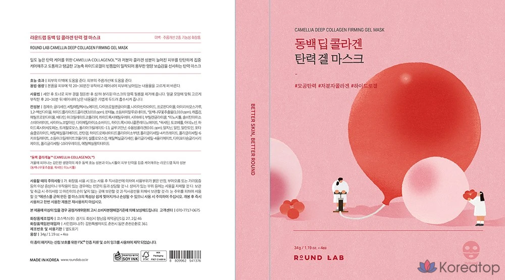 Гелевая маска Round Lab Camellia Deep Collagen Elasticity Gel Mask, 34 г, 4 шт., 1 упаковка