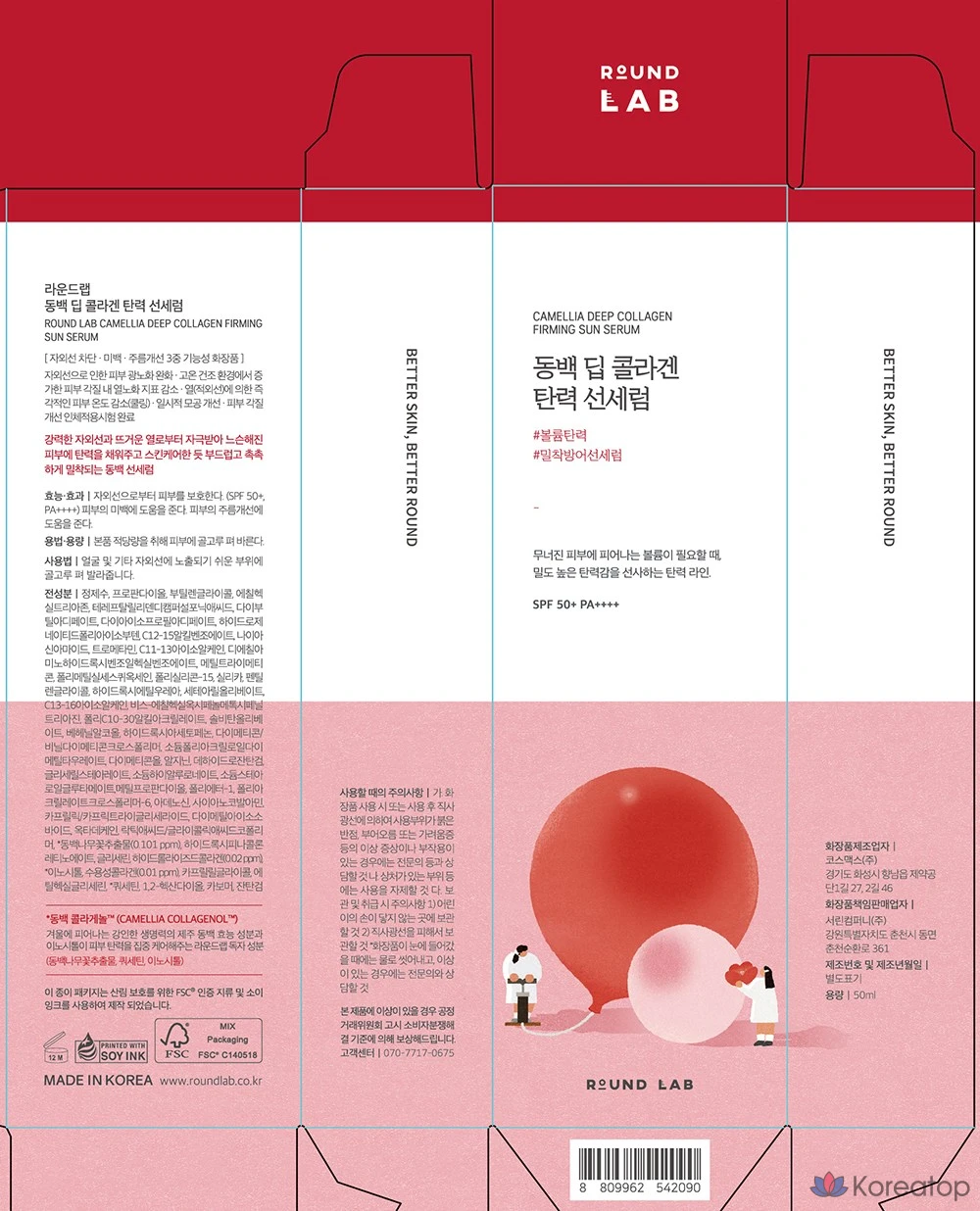Солнцезащитная сыворотка Round Lab Camellia Deep Collagen Elasticity Sun Serum SPF50+ PA++++, 1 шт., 50 мл