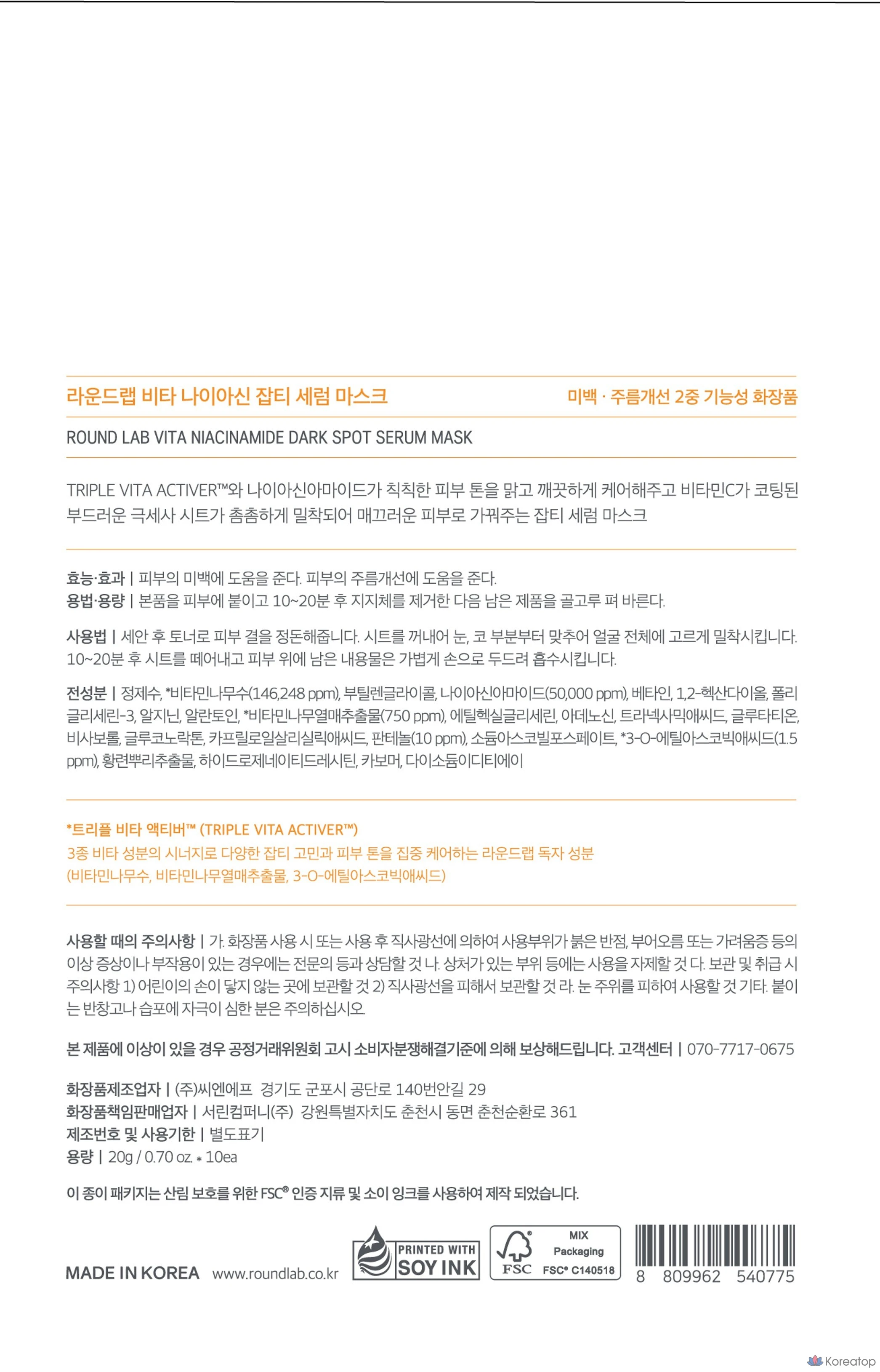 Сыворотка-маска от прыщей Round Lab Vita с ниацином, 20 г, упаковка из 10 штук, 1 упаковка