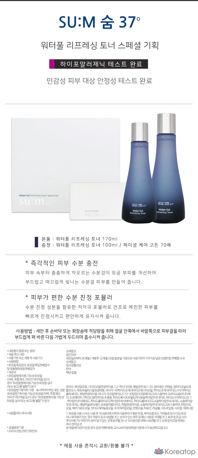 Набор из 2 тоников 37 Degrees Waterful Refreshing Toner, 170 мл + 100 мл, 1 шт., 270 мл