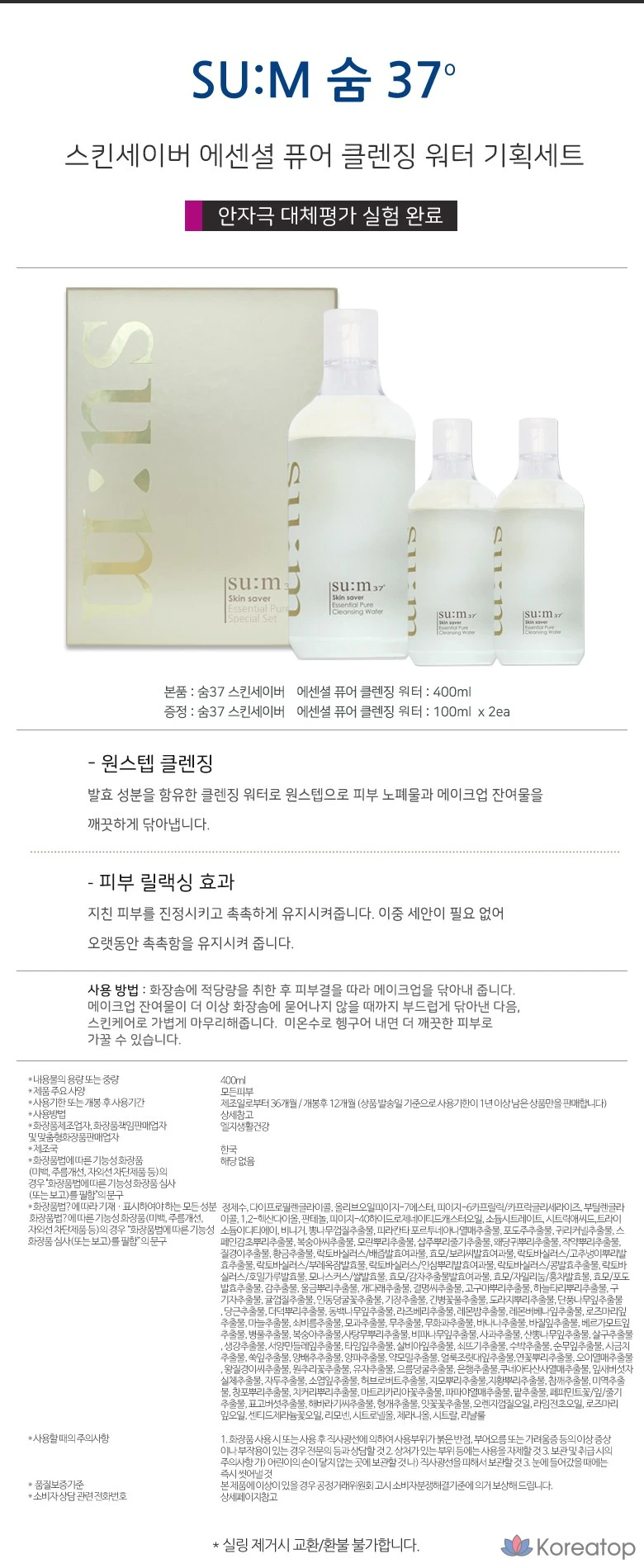 Набор очищающей воды 37 Degrees Skin Saver Essential Pure Cleansing Water, 400 мл