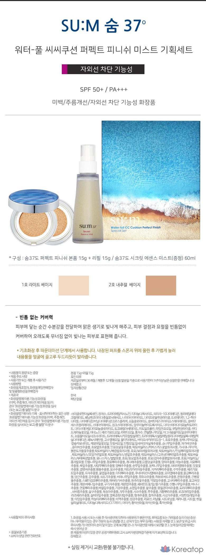 Sum37 Waterful CC Cushion Perfect Finish / Продукт + Сменный блок + Эссенция-спрей 60 мл, 1 шт., № 2