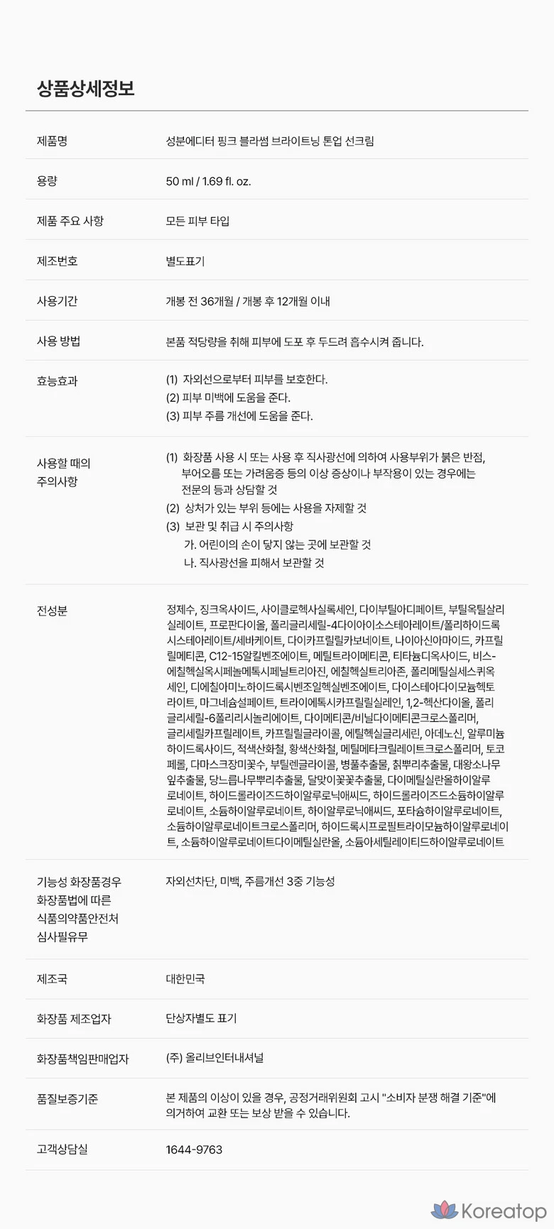 Ingredient Editor Whitening Moisture Tone-Up Pink Blossom Sunscreen, 1 шт., 50 мл