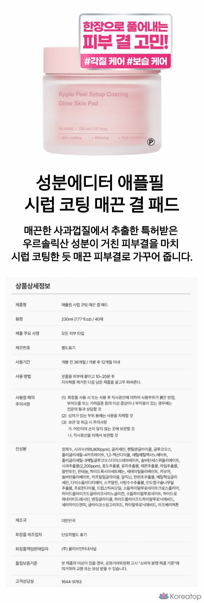 Успокаивающие подушечки Ingredient Editor с сиропом из яблочной кожуры, 230 мл, 40 листов, 1 упаковка.