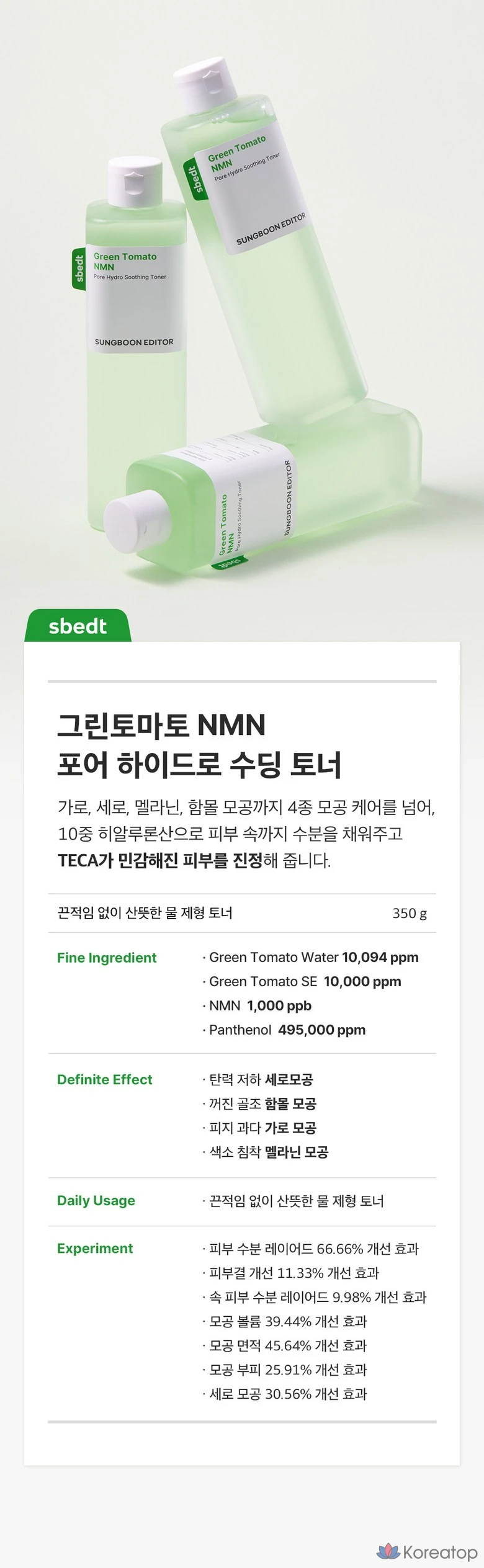 Тоник для ежедневного ухода обеспечивает глубокое увлажнение и уход за кожей. Формула с гиалуроновой кислотой помогает поддерживать оптимальный уровень влаги. Экстракт зеленого томата способствует матированию и очищению пор. Идеально подходит для завершения этапа очищения, подготавливая кожу к нанесению сыворотки или крема. 🌿