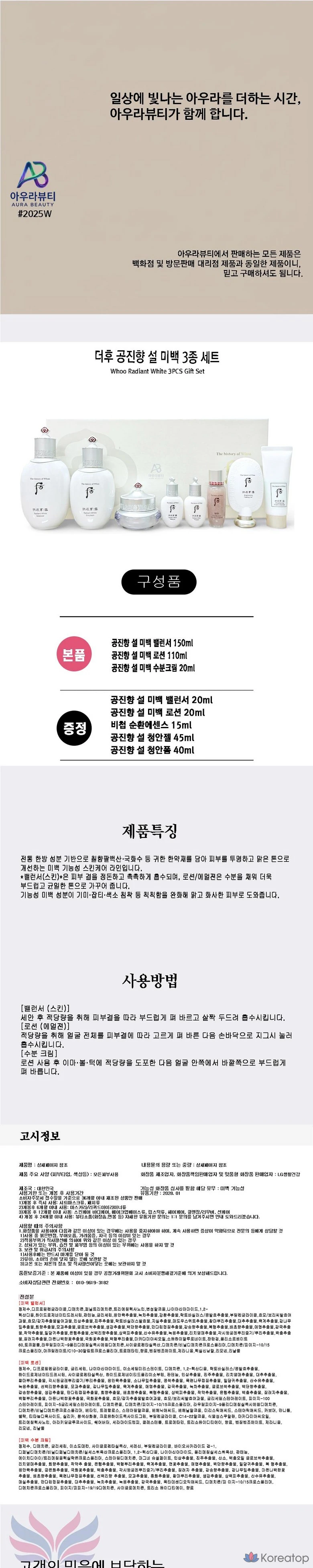История отбеливающей косметики Whoo Gongjinhyang Seol: набор из 3 предметов, 1 комплект.
