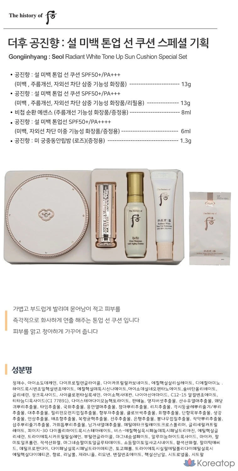 Осветляющий тональный крем-кушон The Whoo Gongjinhyang Seol Whitening Tone-up Sun Cushion Special, 1 комплект