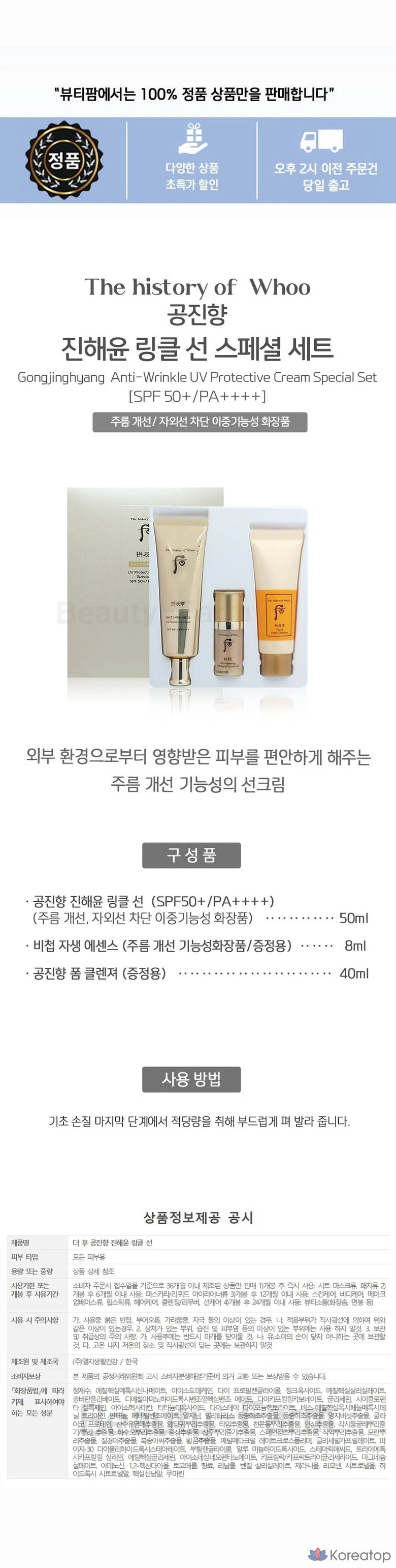 Солнцезащитный крем от морщин The Whoo Gongjinhyang Jinhaeyoon, 1 шт.