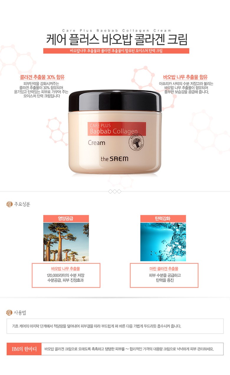 Крем The Saem Care Plus Collagen Baobab Cream, 100 мл, 1 шт.