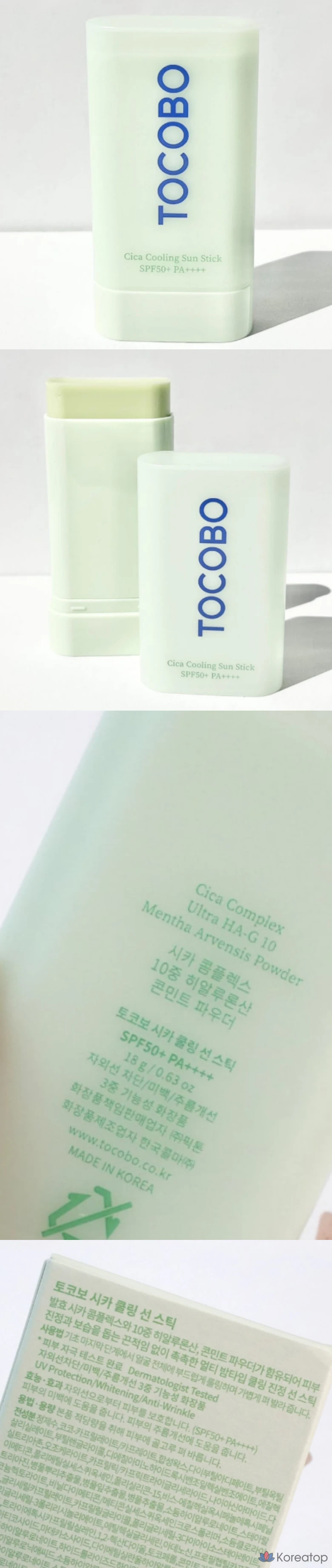 Солнцезащитный стик Tokobo с Cica, охлаждающий, органический, солнцезащитный крем с защитой от УФ-излучения и жаропонижающий эффект для кожи, склонной к акне, SPF50+, 18 г, 1 шт.