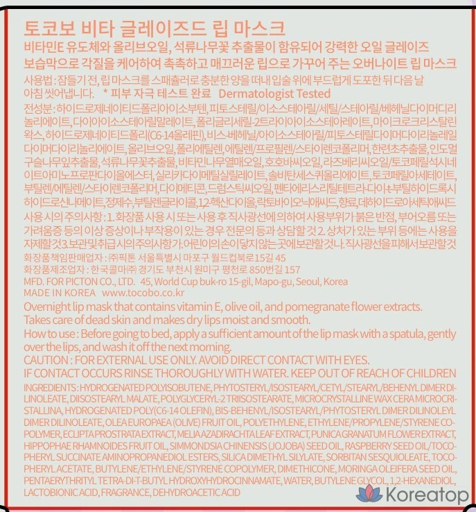 Маска для губ Tokobo Vita Glazed, 20 мл, 1 упаковка, 1 шт.