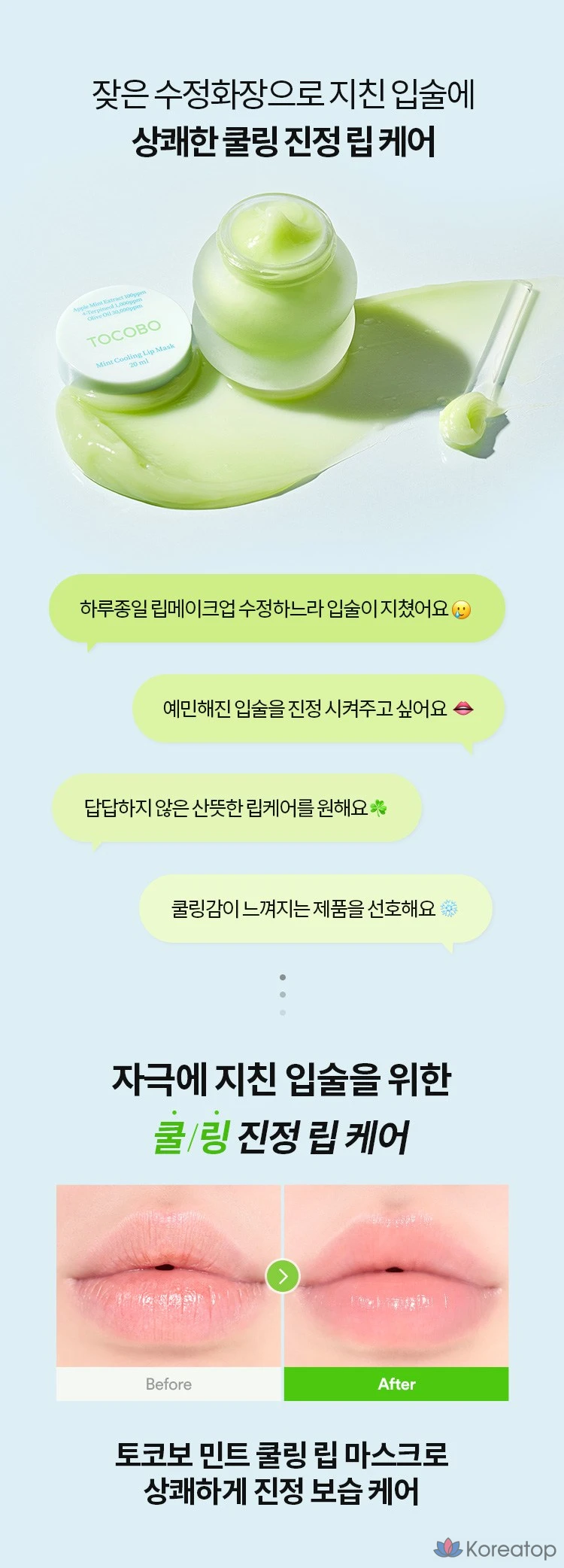 Охлаждающая мятная маска для губ Toboco, 1 шт., мятный вкус, 20 мл