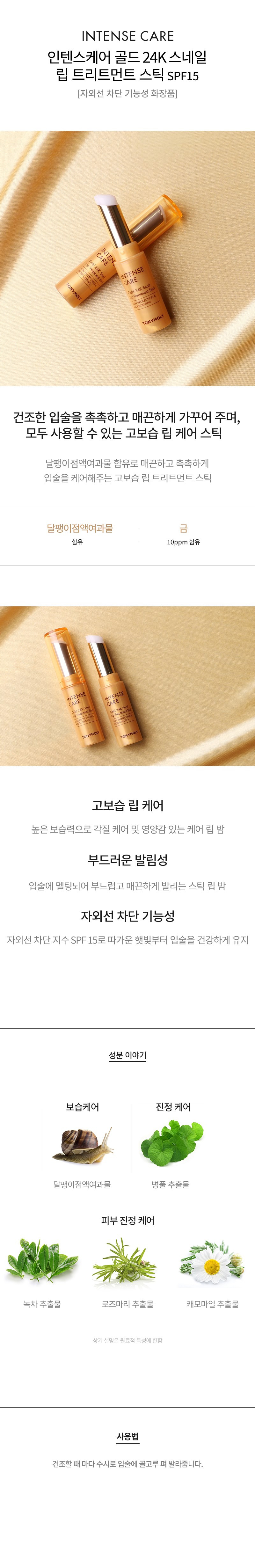 Бальзам для губ Tony Moly Intense Care Gold 24K Snail Lip Treatment Stick, 3.5g, 1 шт.